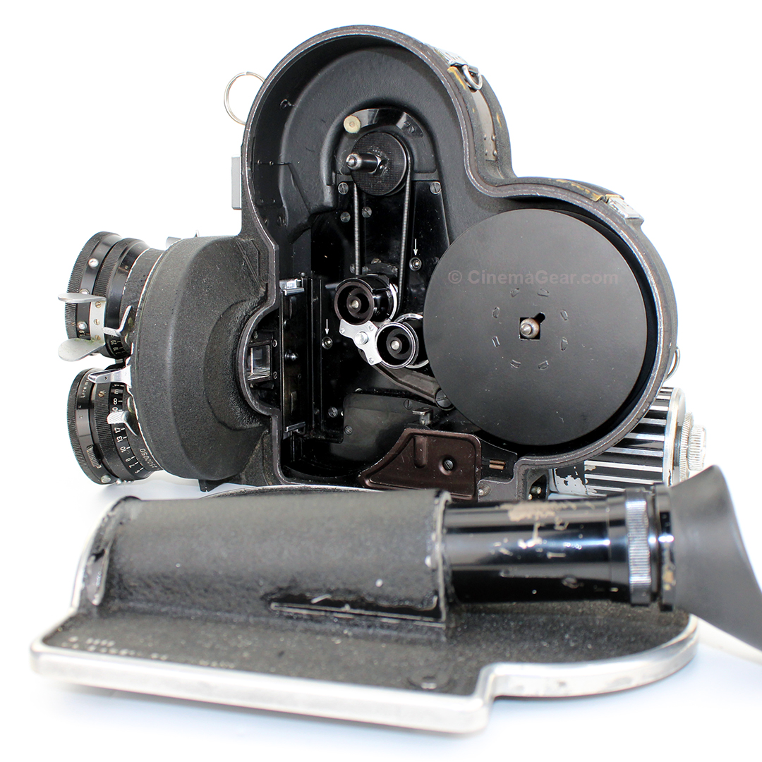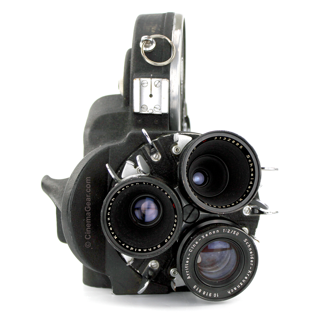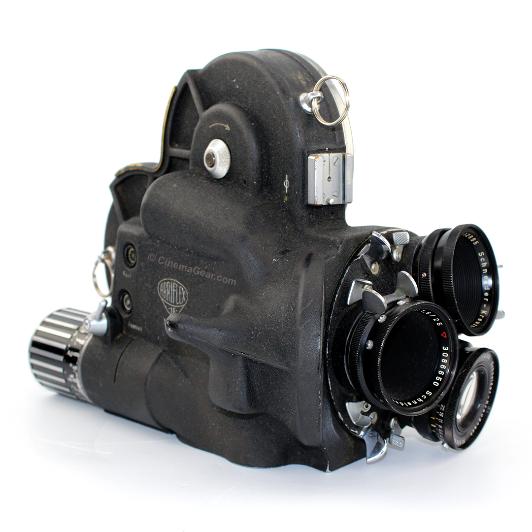 When it was introduced in 1952, the ARRI 16 S quickly became one of the most popular 16mm, full-featured, hand-holdable, spinning mirror reflexed production cameras on the market. Touted for its rugged construction and intuitive, reliable operation, the ARRI 16 was most notable for being the first 16mm spinning mirror reflex camera with an exceptionally bright viewfinder. Other key features that made this camera one of the most innovative of its time include a pin-registered film transport, easily interchangeable motors, the ability to shoot 100’ internal daylight loads or with a 400’ external magazine, a 3-lens divergent turret that allowed the use of telephoto and wide angle lenses on the camera at the same time, and its compact and ergonomic design that made the camera ideal for handheld or tripod-mounted cinematography. The popularity of the ARRI S camera series inspired the creation of numerous accessories to complement this versatile camera, making it suitable for both sync sound and MOS productions. These cameras found wide use in newsgathering, documentary filmmaking, industrial films, television commercials, and independent features and short subjects of all types.