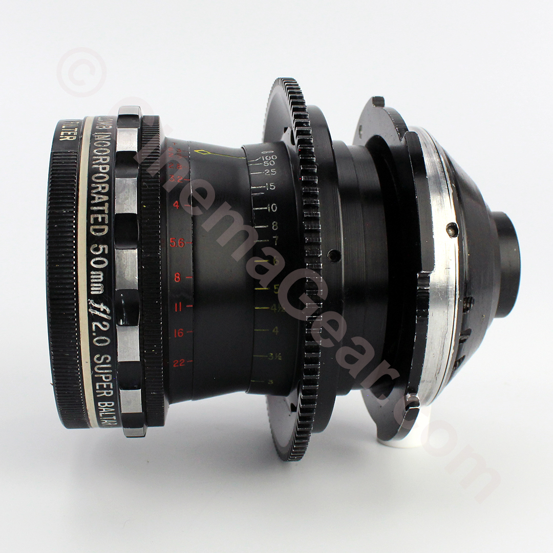 The Bausch & Lomb Super Baltar series of lenses ushered in a new era of optical design when they were introduced in the early 1960s. They carried on the legacy of the world renowned Baltar lenses that shot many classic Hollywood feature films of the 1940s and 50s. In contemporary advertising, Bausch & Lomb touted their new and superior glass-making technology, and a new optical design that attained negligible coma and spherical aberration. All of the elements are anti-reflective coated, and the new focusing design moves the optical assembly in a straight line along the optical axis without the elements rotating as the earlier classic Baltar lenses did. The f-stop controls were redesigned so that there is the same amount of rotation between f-stops on all of the focal lengths. All of the lenses also feature focus and f stop gears, as well as f and T stop engravings.