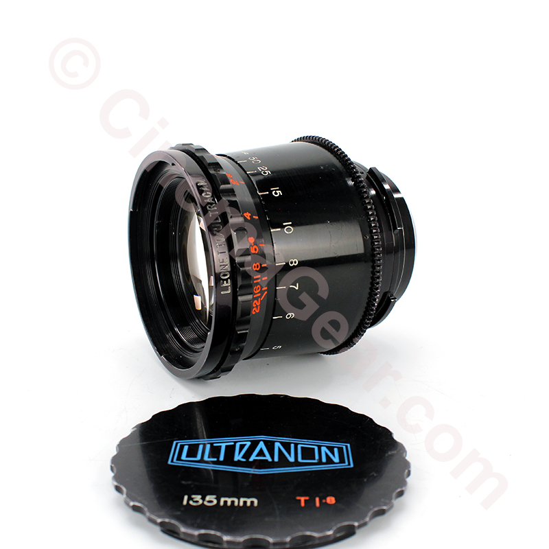Ultranon 135mm T1.8 lens in BNCR mount with front cap. There are cleaning marks on the front and rear elements of this lens.
