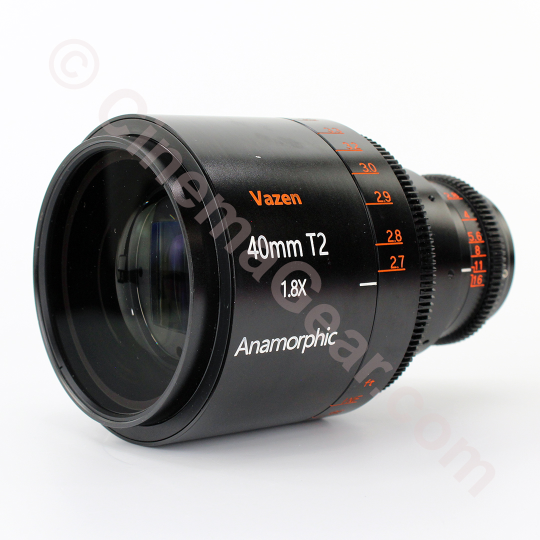 Vazen 50mm T2.1 1.8x anamorphic lens in PL mount. According to factory specs, this lenses will cover full-frame sensors. The 50mm Vazen lens features focus and T-stop gears, a front element diameter of 95mm, and accepts 86mm threaded filters and accessories.